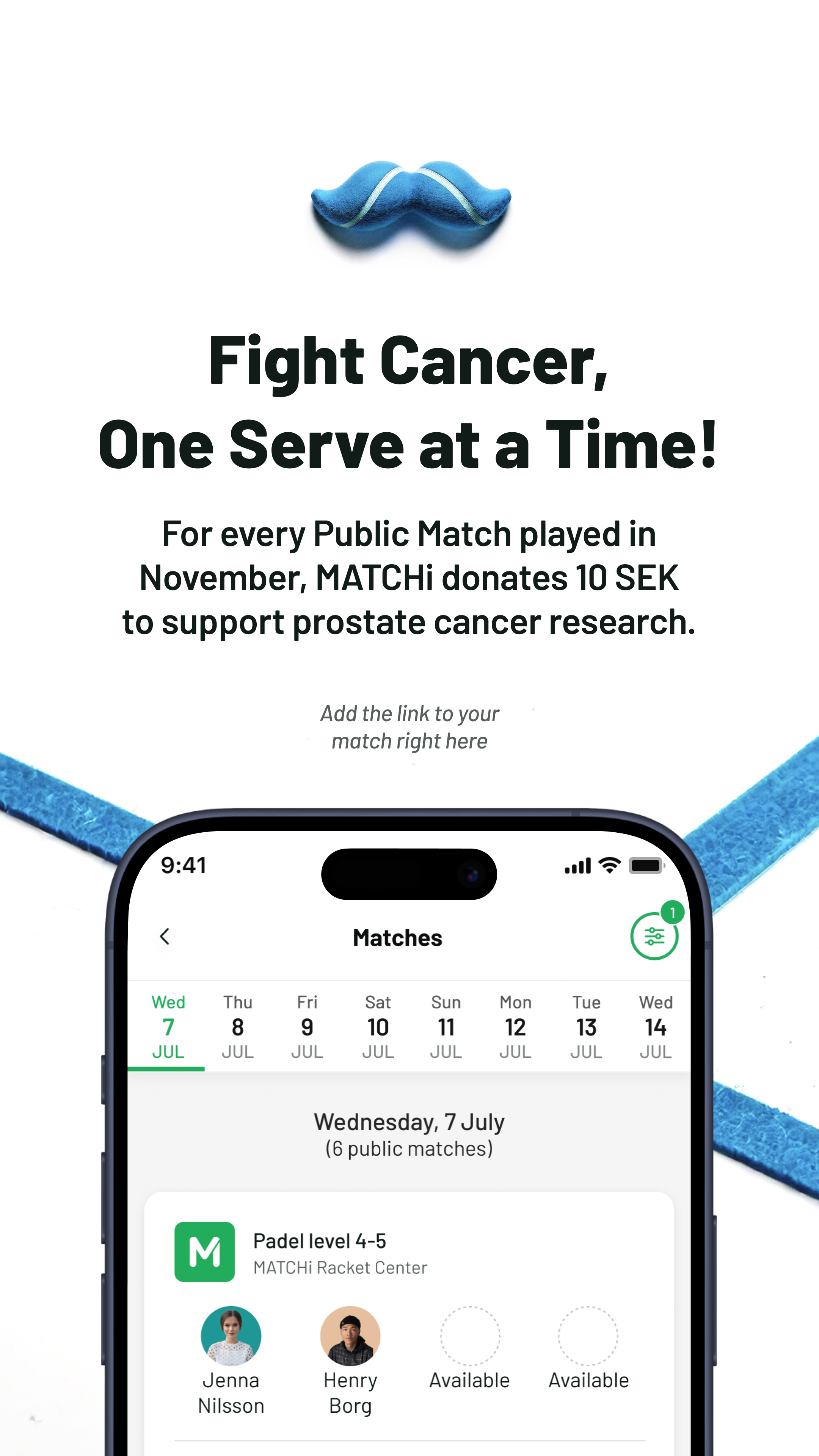 Post the link to your Public Match on Instagram and fill your booking faster, all while joining the fight against prostate cancer.