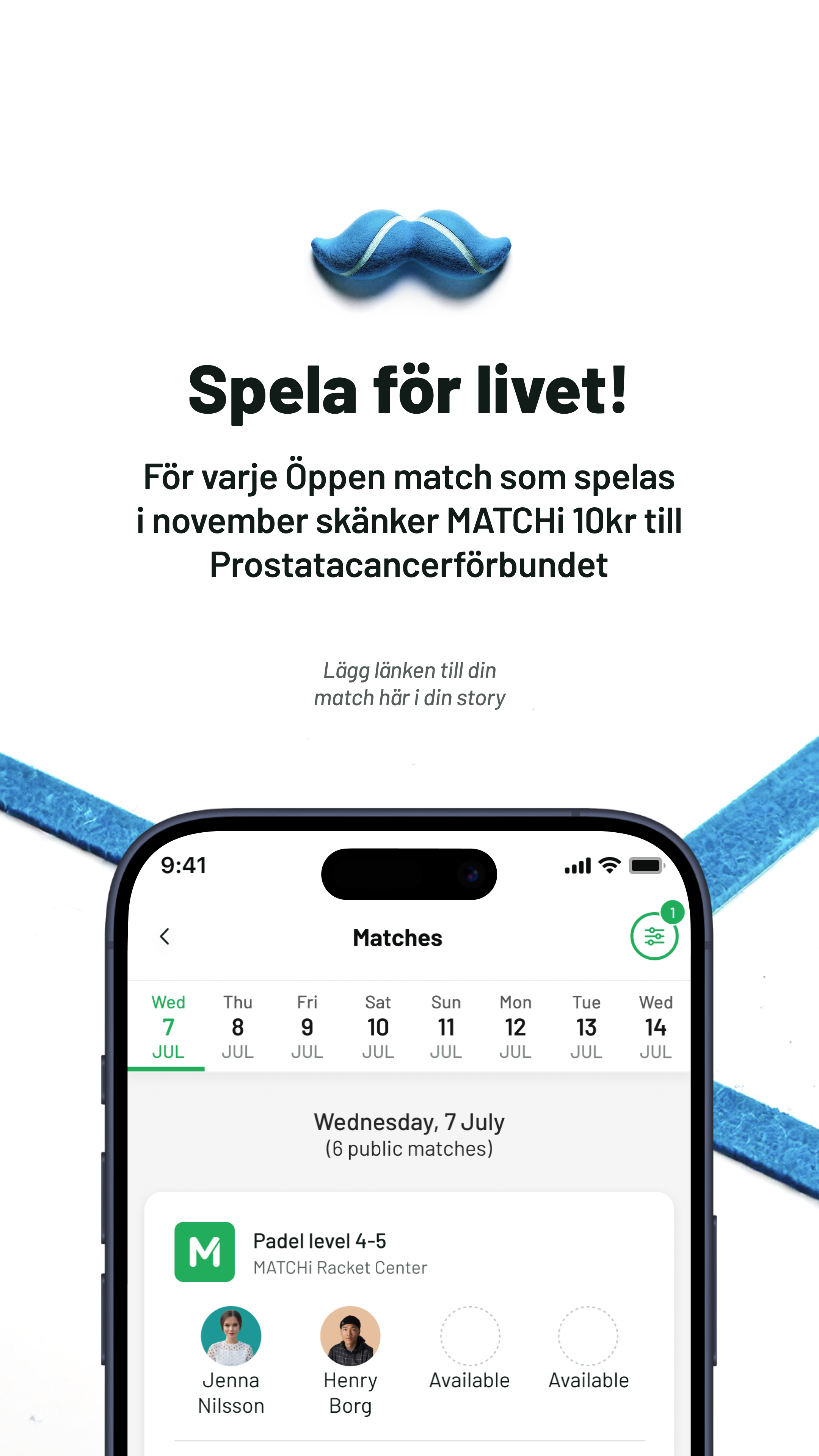 Lägg upp din match på Instagram och fyll din bokning snabbare. Samtidigt som du är med i kampen mot prostatacancer.